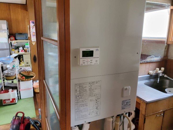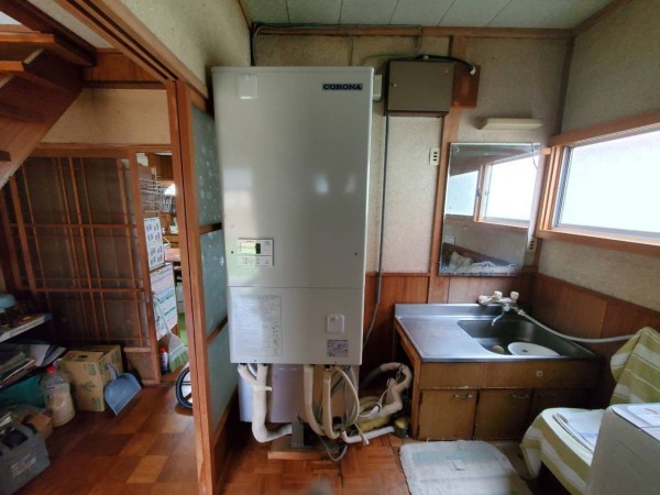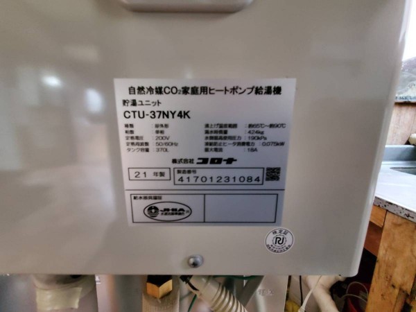 南国市下島 コロナ自然冷媒CO2家庭用ヒートポンプ給湯機 貯湯ユニットCTU-E37AY4K、ヒートポンプユニットCHP-Y453K エコキュート交換工事|高知県のエコキュート専門交換工事店|高知エコキュート交換ショップ補助金対応可能