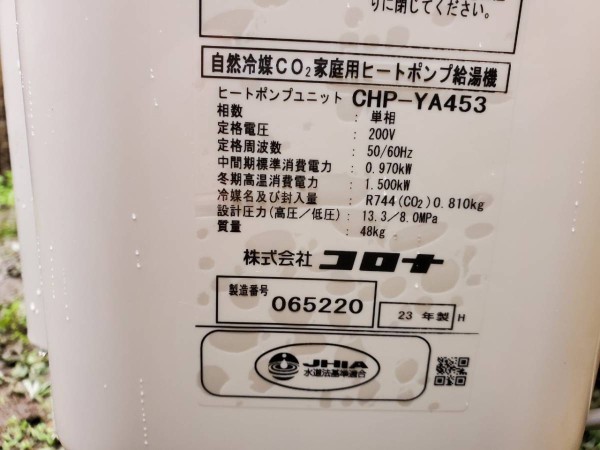 トップページ > 工事事例一覧 > 香美市土佐山田町平山 コロナ自然冷媒CO2家庭用ヒートポンプ給湯機 貯湯ユニットCTU-37SAY4、ヒートポンプユニットCHP-YA453 エコキュート交換工事