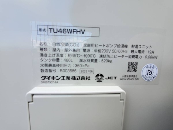 高知市一宮 ダイキン自然冷媒(CO2)・家庭用ヒートポンプ給湯機 貯湯ユニットTU46WFHV エコキュート交換工事|高知県のエコキュート専門交換工事店|高知エコキュート交換ショップ補助金対応可能