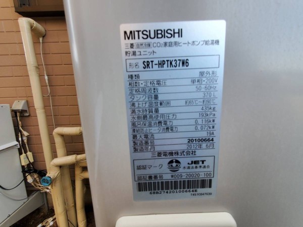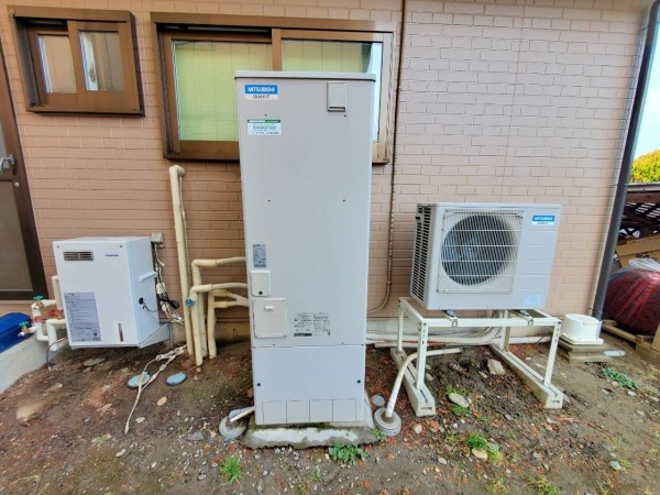 南国市下島 三菱電機エコキュート→ダイキン自然冷媒(CO2)・家庭用ヒートポンプ給湯機 貯湯ユニット、ヒートポンプユニットRQW45WHVエコキュート交換工事
