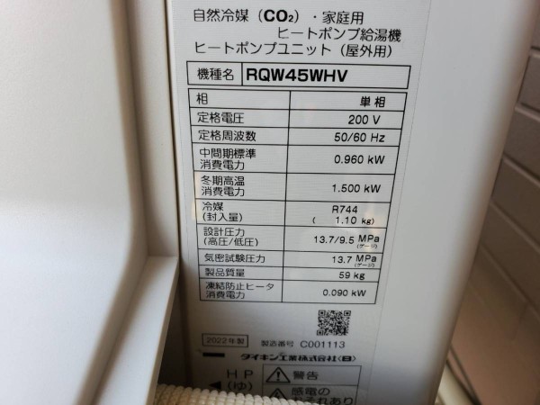 南国市下島 ダイキン自然冷媒(CO2)・家庭用ヒートポンプ給湯機 貯湯ユニット、ヒートポンプユニットRQW45WHVエコキュート交換工事