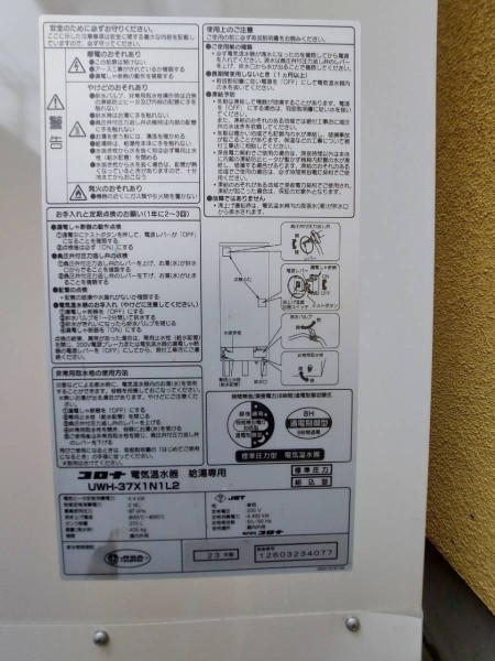 トップページ > 工事事例一覧 > 室戸市領家 コロナ電気温水器 給湯専用 CTU-37X1N1L2 エコキュート交換工事
