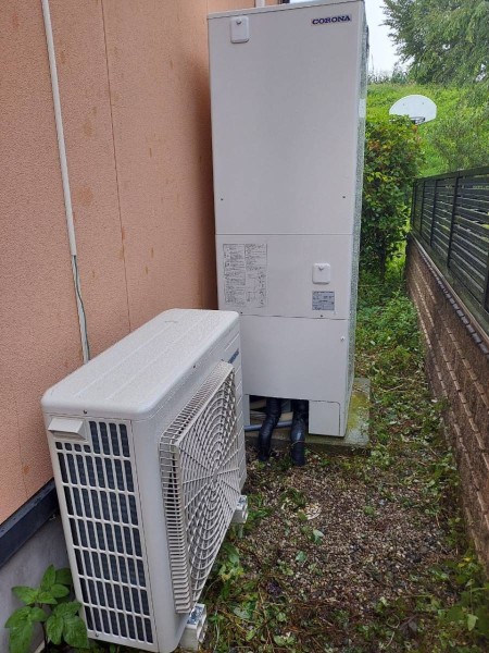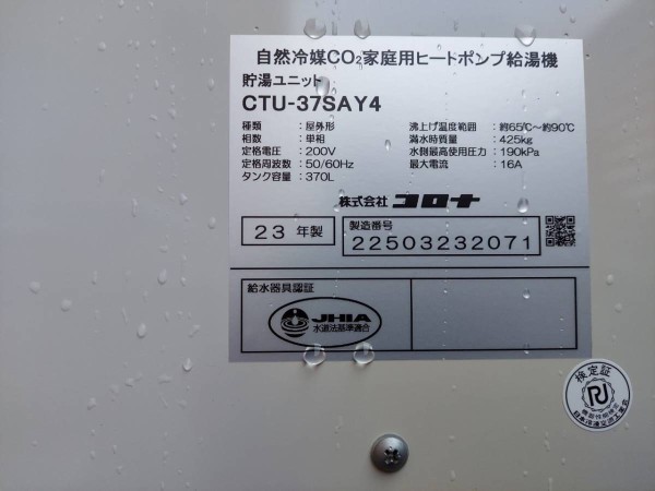 室戸市浮津 東芝エコキュート→コロナ自然冷媒CO2家庭用ヒートポンプ給湯機 貯湯ユニットCTU-37SAY4 エコキュート交換工事