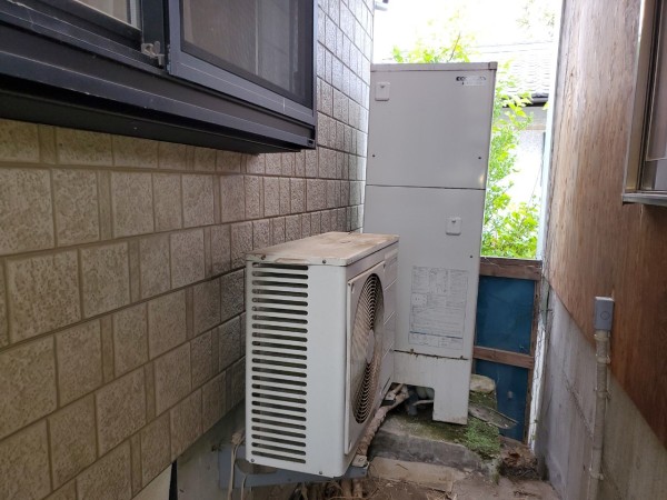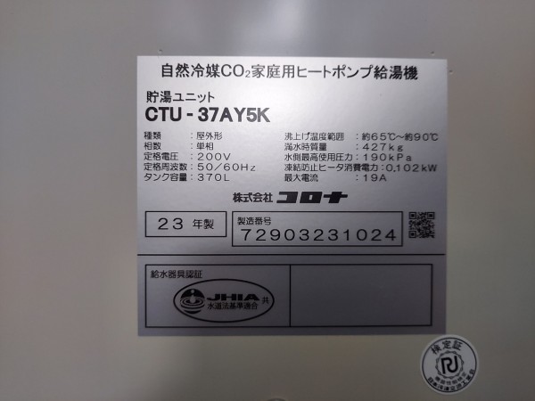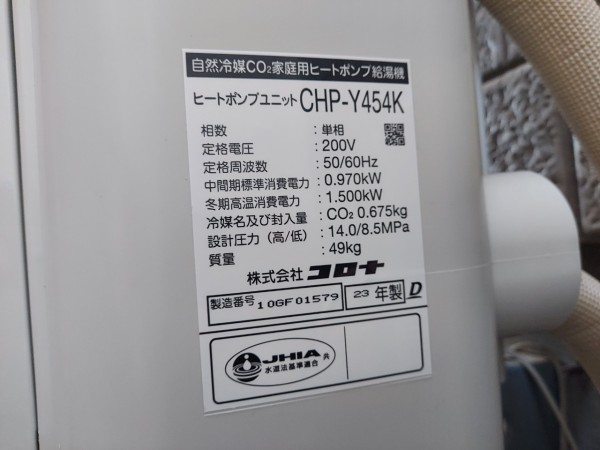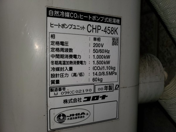 香美市土佐山田町平山 コロナエコキュートCHP-458K→コロナ自然冷媒CO2家庭用ヒートポンプ給湯機貯湯ユニットCTU-37AY5K、ヒートポンプユニットCHP-Y454K エコキュート交換工事