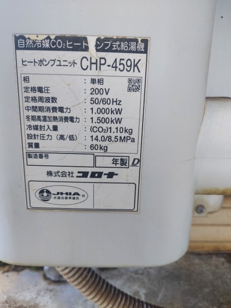 高知市赤石町 コロナエコキュートCHP-459K→コロナ自然冷媒CO2家庭用ヒートポンプ給湯機ヒートポンプユニットCHP-Y454K エコキュート交換工事