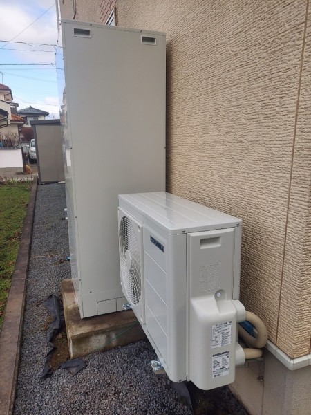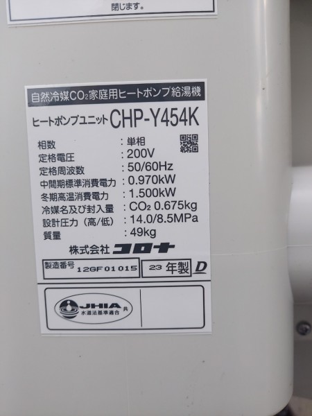 高知市薊野 コロナ自然冷媒CO2家庭用ヒートポンプ給湯機ヒートポンプユニットCHP-Y454K、貯湯ユニットCTU-37AY5K エコキュート交換工事