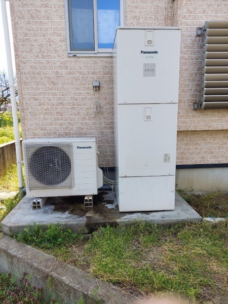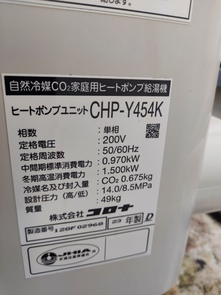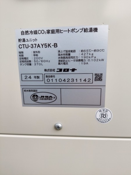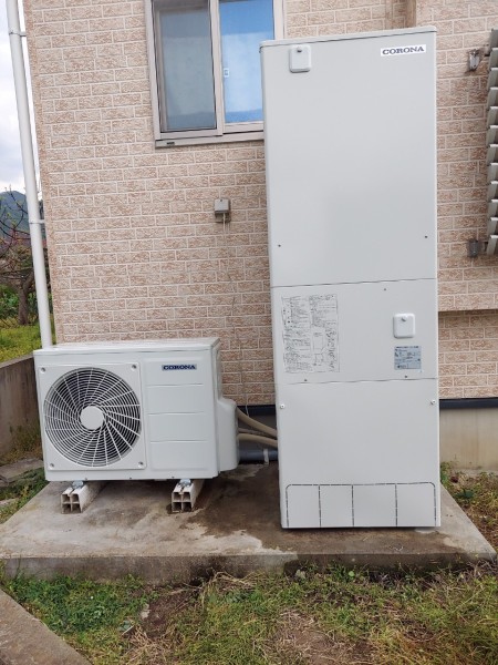 土佐清水市上野 パナソニックエコキュート→コロナ自然冷媒CO2家庭用ヒートポンプ給湯機貯湯ユニットCTU-37AY5K-B、ヒートポンプユニットCHP-Y454K エコキュート交換工事