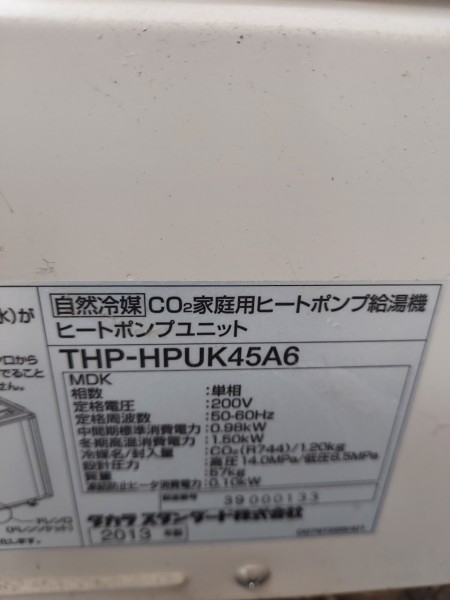 室戸市浮津 タカラスタンダードエコキュート→コロナ自然冷媒CO2家庭用ヒートポンプ ヒートポンプユニットCHP-Y454K エコキュート交換工事
