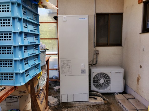 室戸市浮津 コロナ自然冷媒CO2家庭用ヒートポンプ ヒートポンプユニットCHP-Y454K エコキュート交換工事