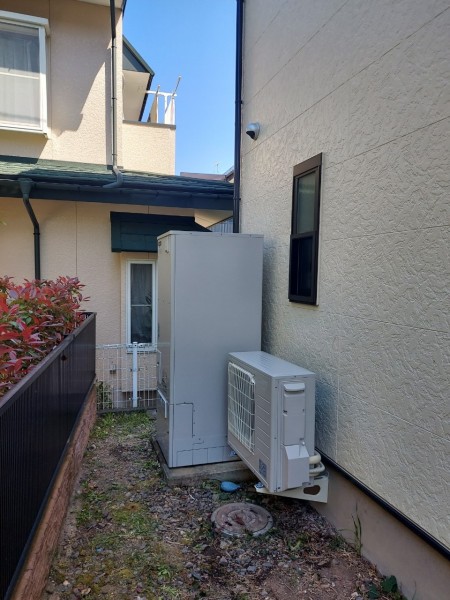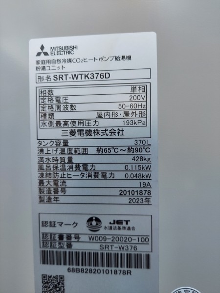 室戸市領家 三菱電機自然冷媒CO2家庭用ヒートポンプ給湯機ヒートポンプユニットSRT-MUK456-A、貯湯ユニットSRT-WTK376D エコキュート交換工事