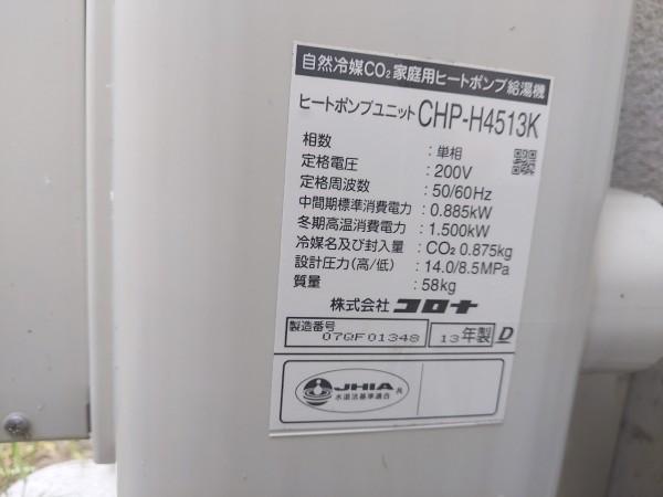 土佐市用石 コロナエコキュート→コロナ自然冷媒CO2家庭用ヒートポンプ給湯機ヒートポンプユニットCHP-DZ601K エコキュート交換工事