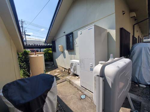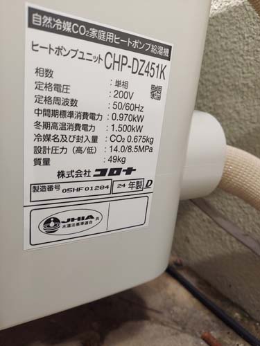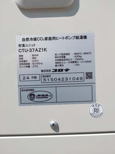 高知市薊野 コロナ自然冷媒CO2家庭用ヒートポンプ給湯機 貯湯ユニットCTU-37AZ1K、ヒートポンプユニットCHP-DZ451K エコキュート交換工事