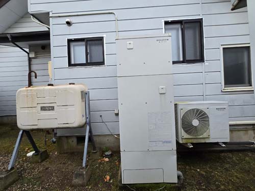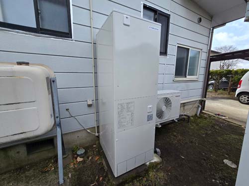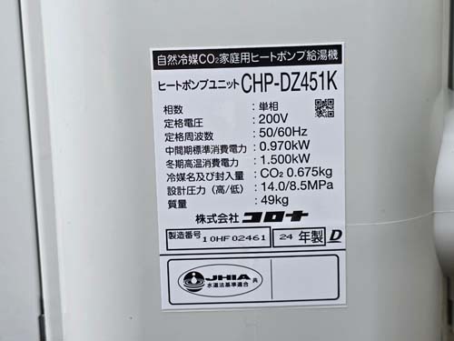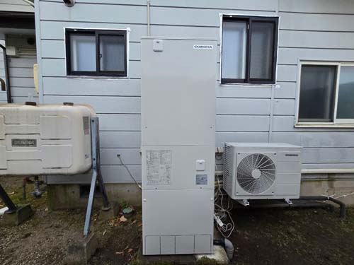 香南市夜須町出口 コロナエコキュート→コロナ自然冷媒CO2家庭用ヒートポンプ給湯機 ヒートポンプユニットCHP-DZ451K エコキュート交換工事