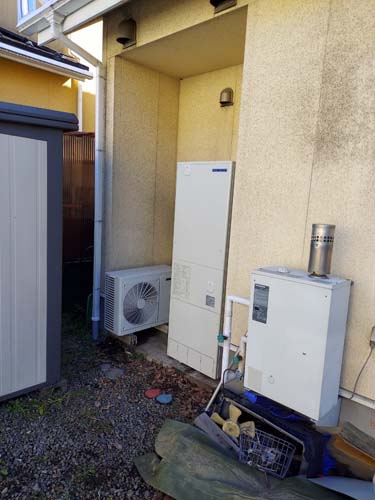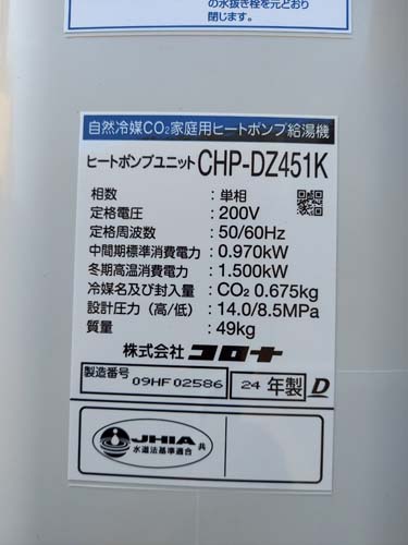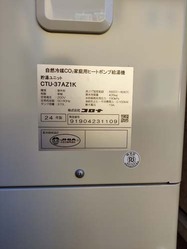 土佐清水市上野 三菱電機エコキュートSRT-HPUK45A1→コロナ自然冷媒CO2家庭用ヒートポンプ給湯機貯湯ユニットCTU-37AZ1K、ヒートポンプユニットCHP-DZ451K エコキュート交換工事