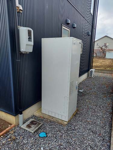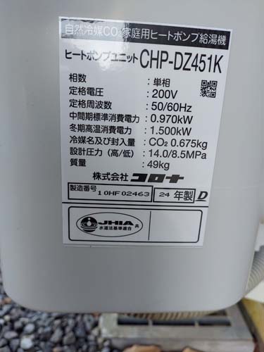 土佐市積善寺 コロナ自然冷媒CO2家庭用ヒートポンプ給湯機 ヒートポンプユニットCHP-DZ451K エコキュート交換工事