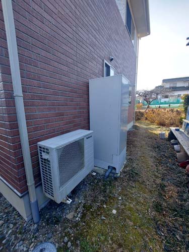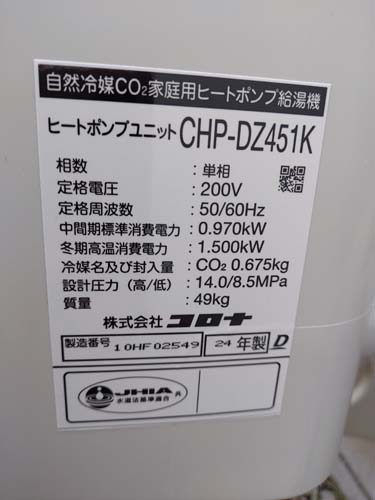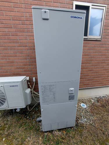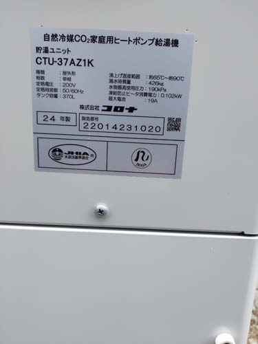 土佐市浅井 コロナ自然冷媒CO2家庭用ヒートポンプ給湯機貯湯ユニットCTU-37AZ1K、ヒートポンプユニットCHP-DZ451K エコキュート交換工事