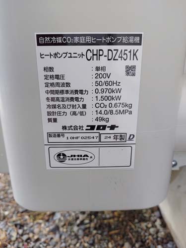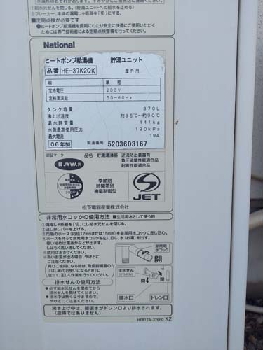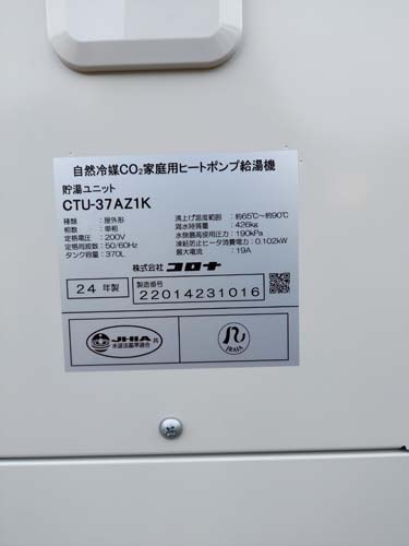 香南市夜須町出口 Nationalヒートポンプ給湯機貯湯ユニットHE-37K2QK→コロナ自然冷媒CO2家庭用ヒートポンプ給湯機貯湯ユニットCTU-37AZ1K、ヒートポンプユニットCHP-DZ451K エコキュート交換工事