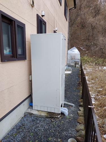 トップページ > 工事事例一覧 > 香美市物部町柳瀬 コロナ自然冷媒CO2家庭用ヒートポンプ給湯機 ヒートポンプユニットCHP-DZ451K エコキュート交換工事
