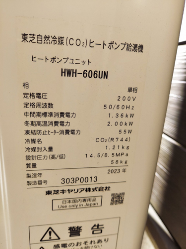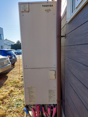 香美市土佐山田町平山 東芝自然冷媒CO2家庭用ヒートポンプ給湯機 ヒートポンプユニットHWH-606UN→コロナ自然冷媒CO2家庭用ヒートポンプ給湯機 ヒートポンプユニットCHP-DZ451K エコキュート交換工事