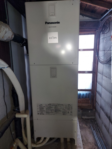 トップページ > 工事事例一覧 > 香美市物部町柳瀬 コロナ自然冷媒CO2家庭用ヒートポンプ給湯機 ヒートポンプユニットCHP-DZ451K エコキュート交換工事