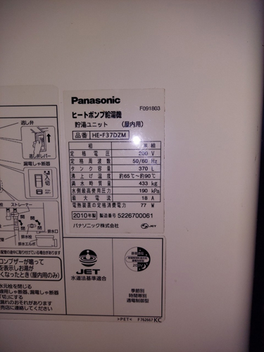 香美市物部町柳瀬 パナソニックヒートポンプ給湯機 貯湯ユニットHE-F37DZM→コロナ自然冷媒CO2家庭用ヒートポンプ給湯機 ヒートポンプユニットCHP-DZ451K エコキュート交換工事