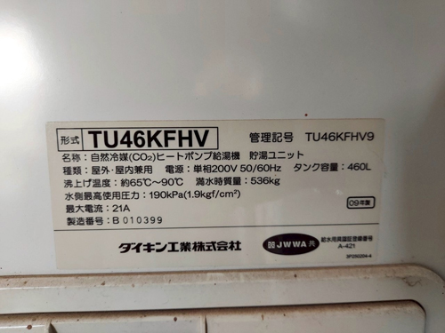 いの町枝川 ダイキン自然冷媒CO2ヒートポンプ給湯機 貯湯ユニットTU46KFHV→コロナ自然冷媒CO2家庭用ヒートポンプ給湯機貯湯ユニットCTU-37AZ1K、ヒートポンプユニットCHP-DZ451K エコキュート交換工事