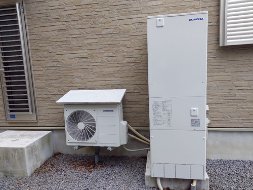 トップページ > 工事事例一覧 > いの町槇 コロナ自然冷媒CO2家庭用ヒートポンプ給湯機貯湯ユニットCTU-37AZ1K、ヒートポンプユニットCHP-DZ451K エコキュート交換工事