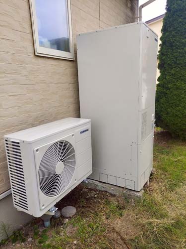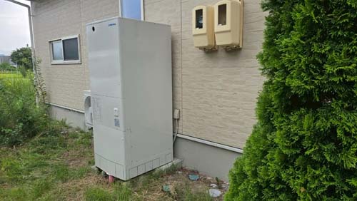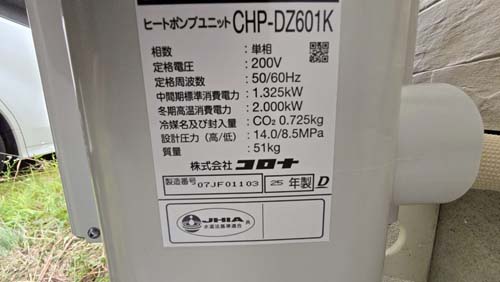 馬路村魚梁瀬 コロナ自然冷媒CO2家庭用ヒートポンプ給湯機 ヒートポンプユニットCHP-DZ601K、貯湯ユニットCTU-46AZ1K エコキュート交換工事